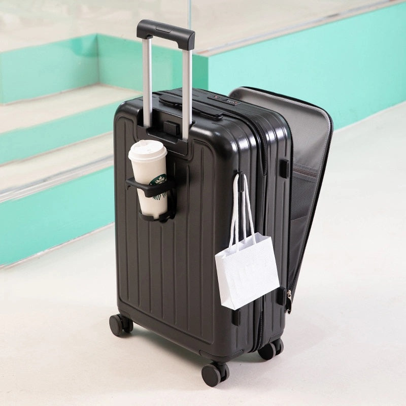 Front Open Luggage Suitcase with Cup Holder and USB Port.