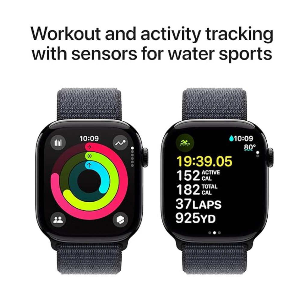 Watch Series 10 [46mm GPS] - Jet Black Aluminium with Ink Sport Loop | Advanced Fitness Tracker, ECG, Always-On Retina Display | Carbon Neutral, Sleek Design | 1-Year Warranty | Airpods Pro (Free Gift)